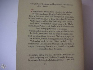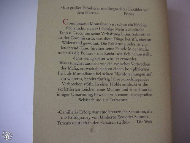Commissario Montalbano ist schon ein bisschen überrascht, als der flüchtige Mehrfachmörder Tano u Grecu um seine Verhaftung bittet. Schließlich ist der Commissario, was diese Dinge betrifft, eher an Widerstand gewöhnt. Die Erklärung indes ist einleuchtend: Tano fürchtet seine Feinde in der Mafia mehr als die Polizei? Mit Recht, wie sich herausstellt, denn wenig später wird er ermordet. Was zunächst aussieht wie ein typisches Verbrechen der Mafia, entwickelt sich zu einem komplizierten Fall, als Montalbano bei seinen Nachforschungen auf ein weiteres, bereits fünfzig Jahre zurückliegendes Verbrechen stößt. In einer Höhle entdeckt er die skelettierten Leichen eines Mannes und einer Frau in inniger Umarmung, bewacht von einem lebensgroßen Schäferhund aus Terracotta. … Commissario Montalbano löst seinen zweiten Fall. Mittlerweile sind es 22 Fälle…